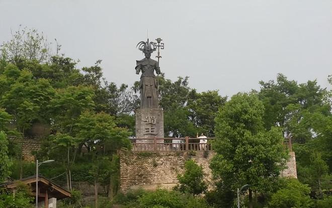 在海窝子古镇的瞿上广场之上,还矗立着一座传说中的蜀王蚕丛雕像。雕像的身姿高大雄伟,头戴王冠,手持战戟,威严庄重。